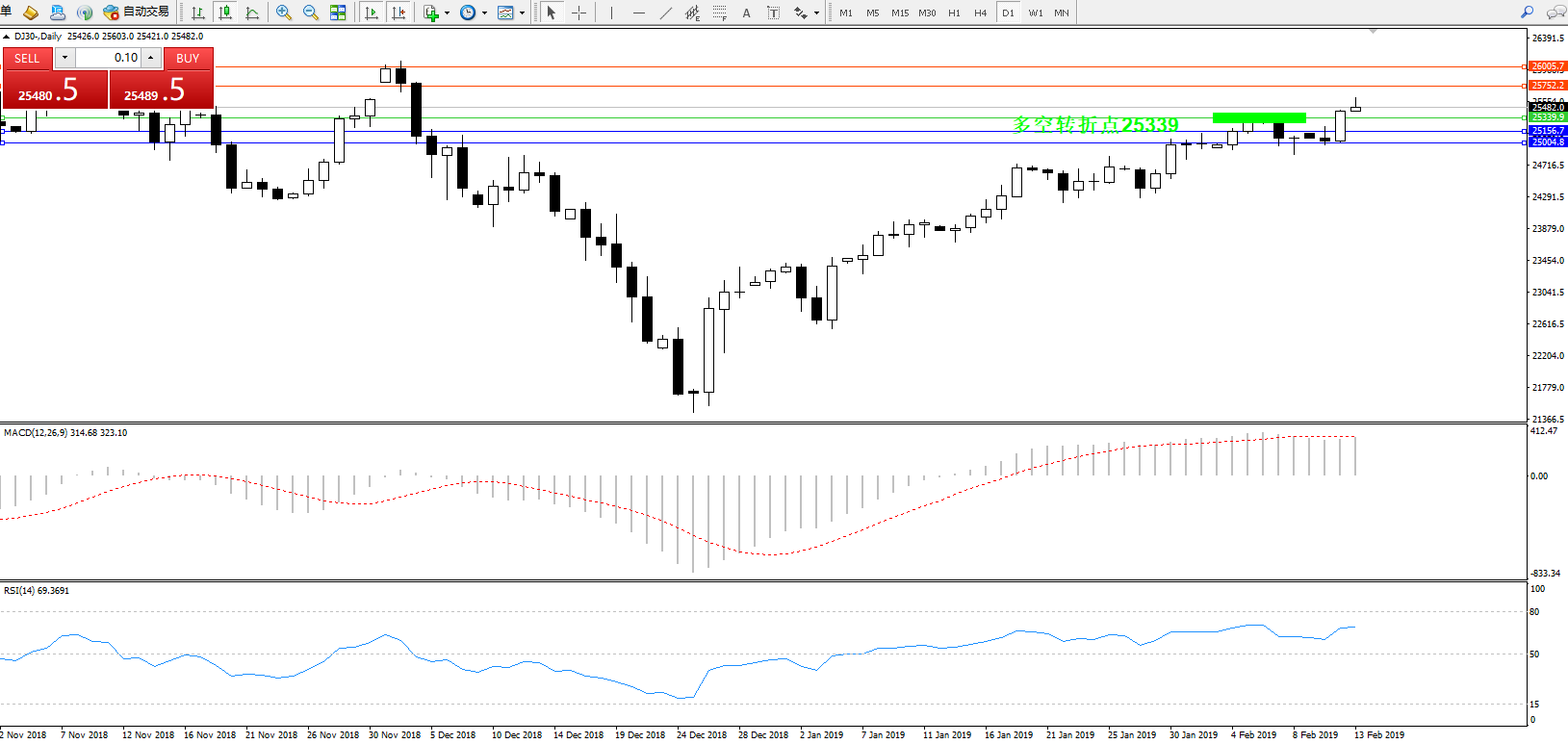道琼斯指数DJ30—— 日K线图显示: