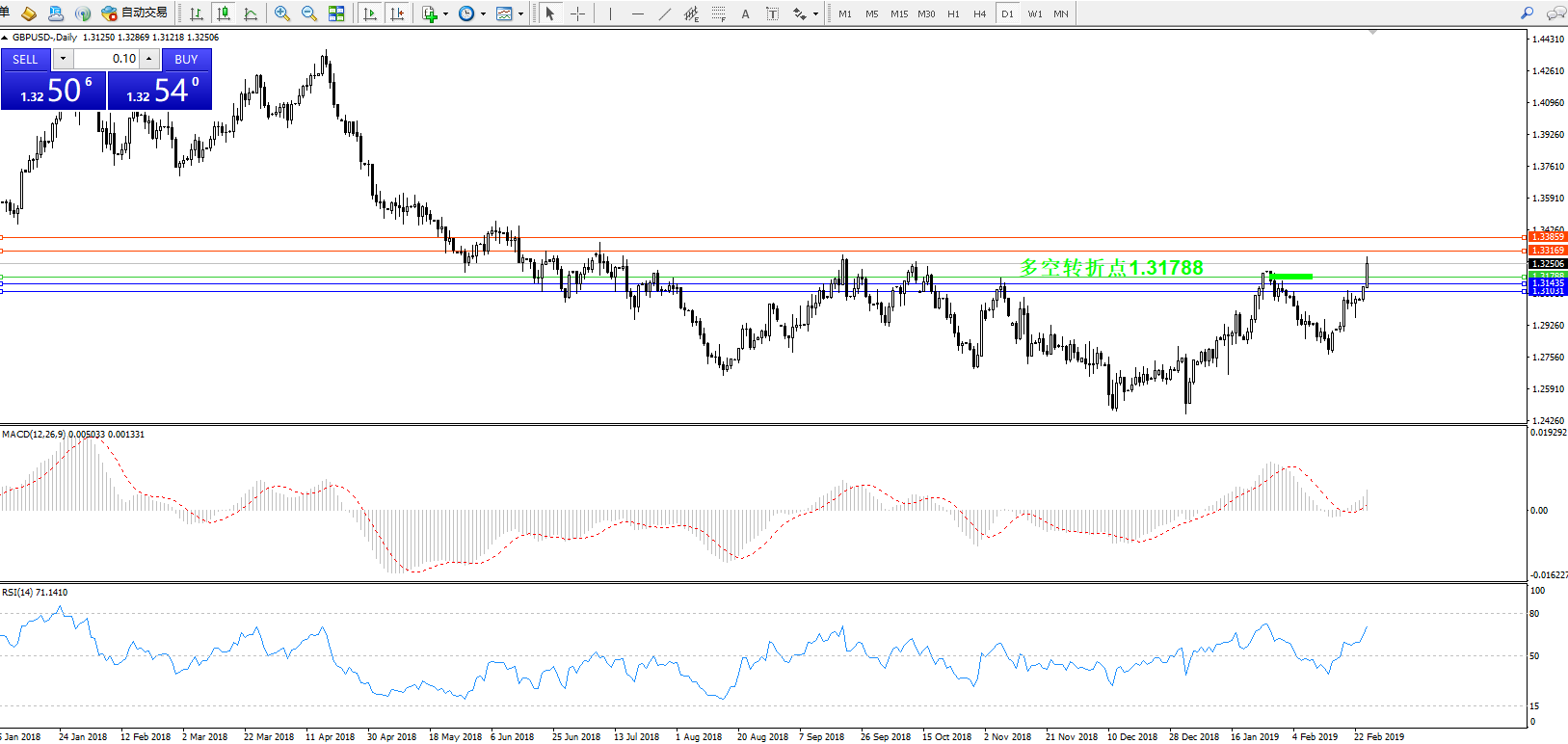 交易策略:1.31788上方看涨,目标1.33169、1.33859
