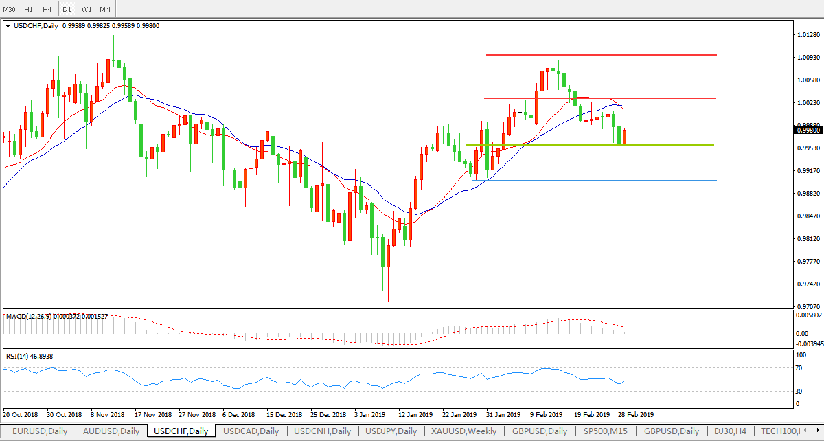 美元兑瑞郎USDCHF日线图