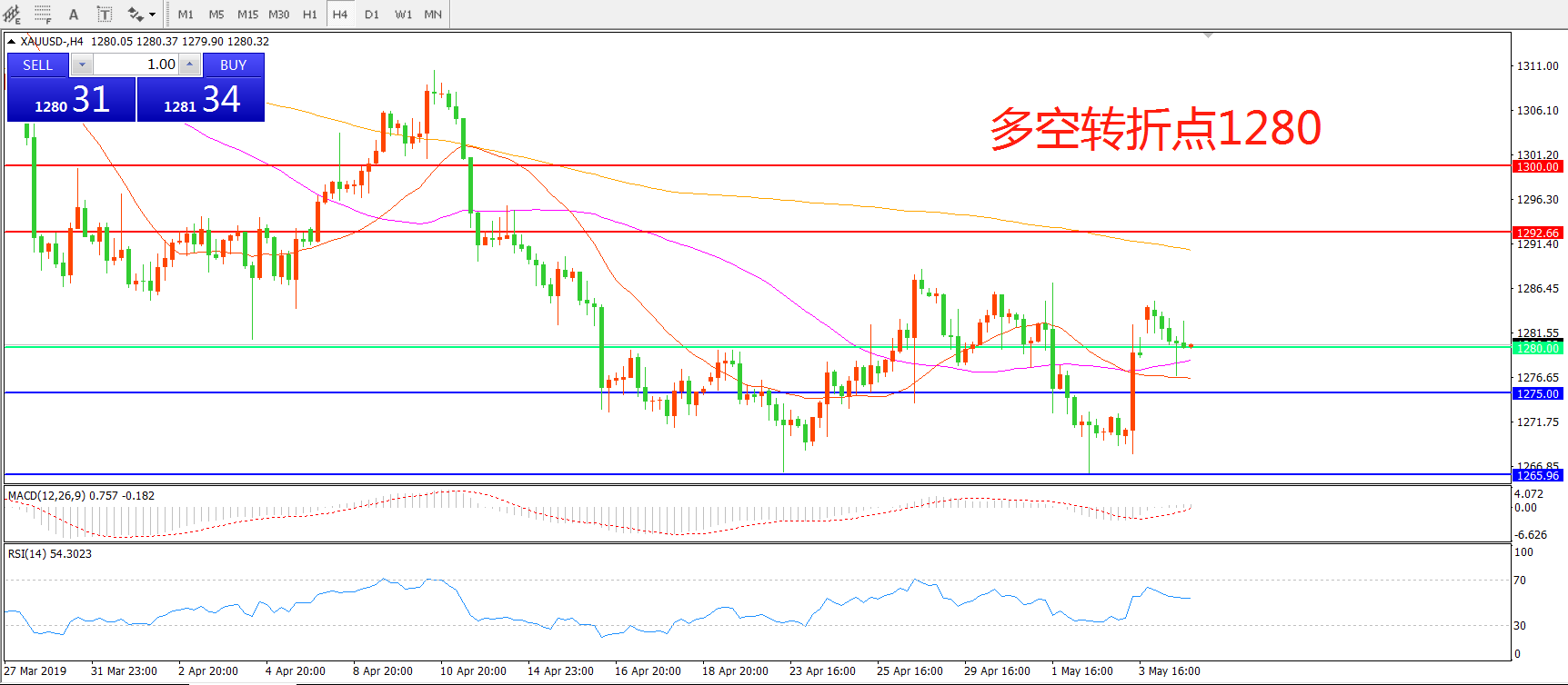 美国总统特朗普发推特称,从本周五(5月10日)开始,美国对中国价值2000亿美元的输美商品所征收的关税将从目前的10%增加到25%引发市场恐慌,全球股市大跌,金价一度跳涨至1285美元/盎司。但下午16时左右,新华社、人民日报、澎湃新闻等官方媒体报道,中方团队正准备赴美磋商,缓解了市场的紧张情绪,金价基本回吐日内涨幅,收报于1281.40美元/盎司