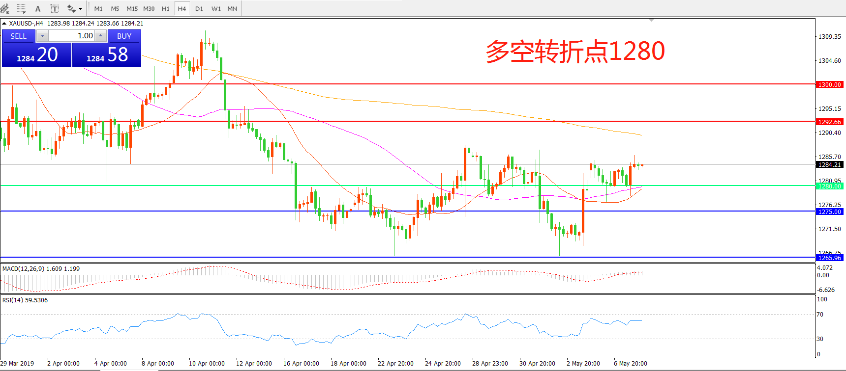 交易策略:在1280.00之上看涨,目标1292.00 1300.00