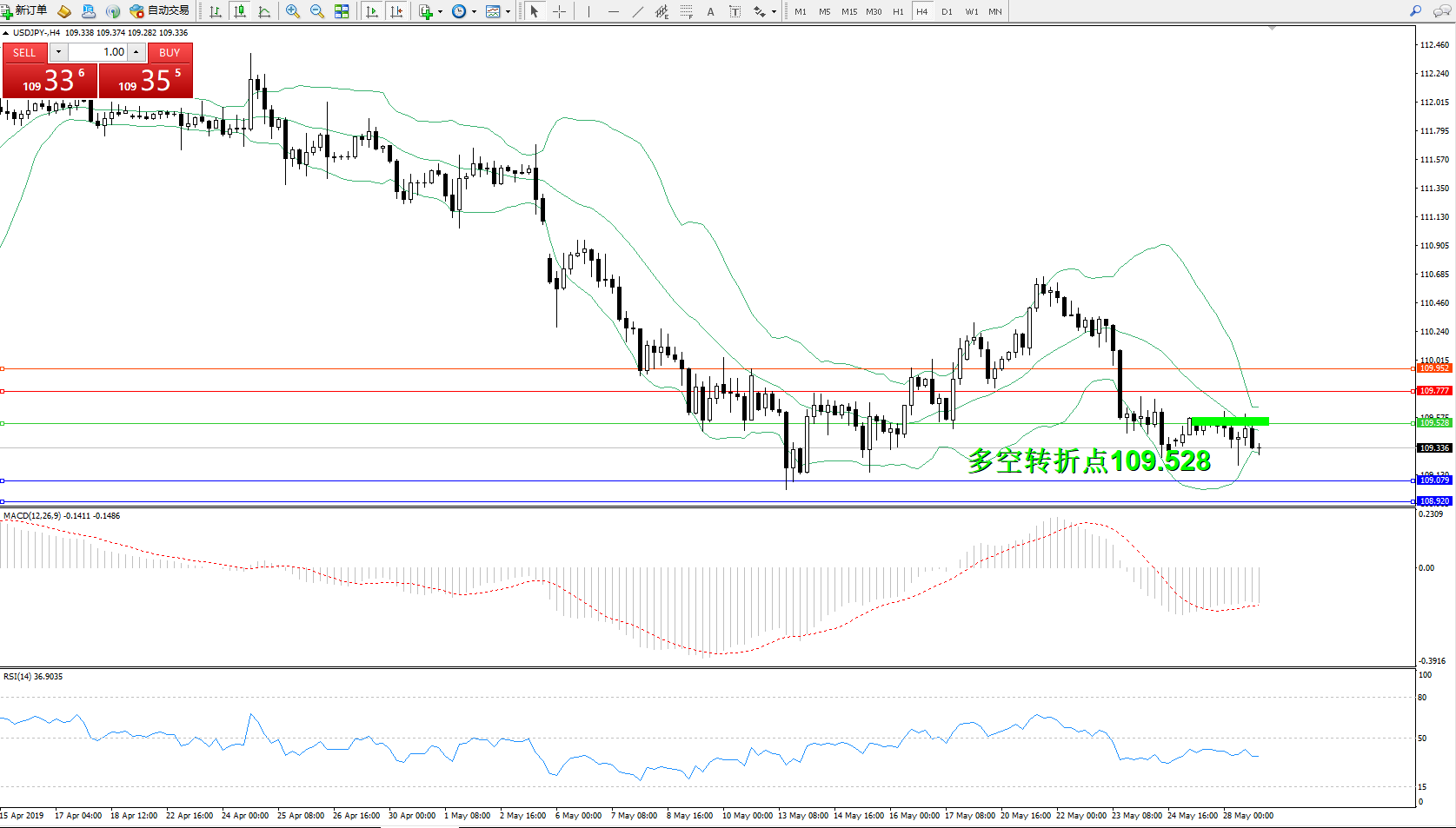 美日延续跌势,盘中创515日以来的近两周新低109.21,虽有所短暂反弹。美日贸易谈判无果加剧市场恐慌,推动日元汇率持续坚挺的原因在于欧系货币表现疲软,市场对欧洲议会选举后的人事安排,以及英国脱欧的进一步前景仍存在疑虑,避险资金因而流入了日元资产市场。加之,美国总统特朗普此前出访日本并未能在关键的贸易问题上与日方达成共识,这一敏感事件也将被继续拖延下去,不确定消息之下,日元固定收益资产进一步受到热捧,令日元汇率在日内领涨G10货币。