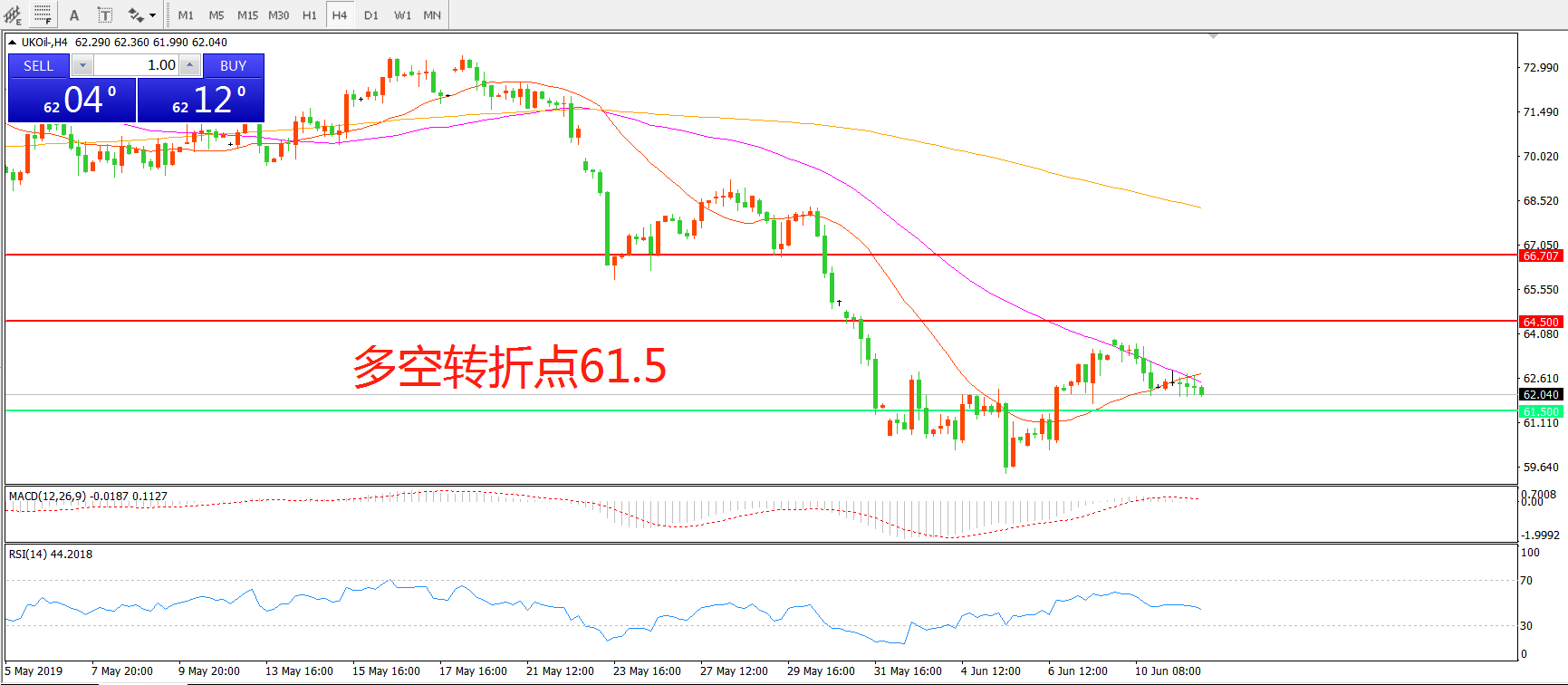 多空转折点:61.50