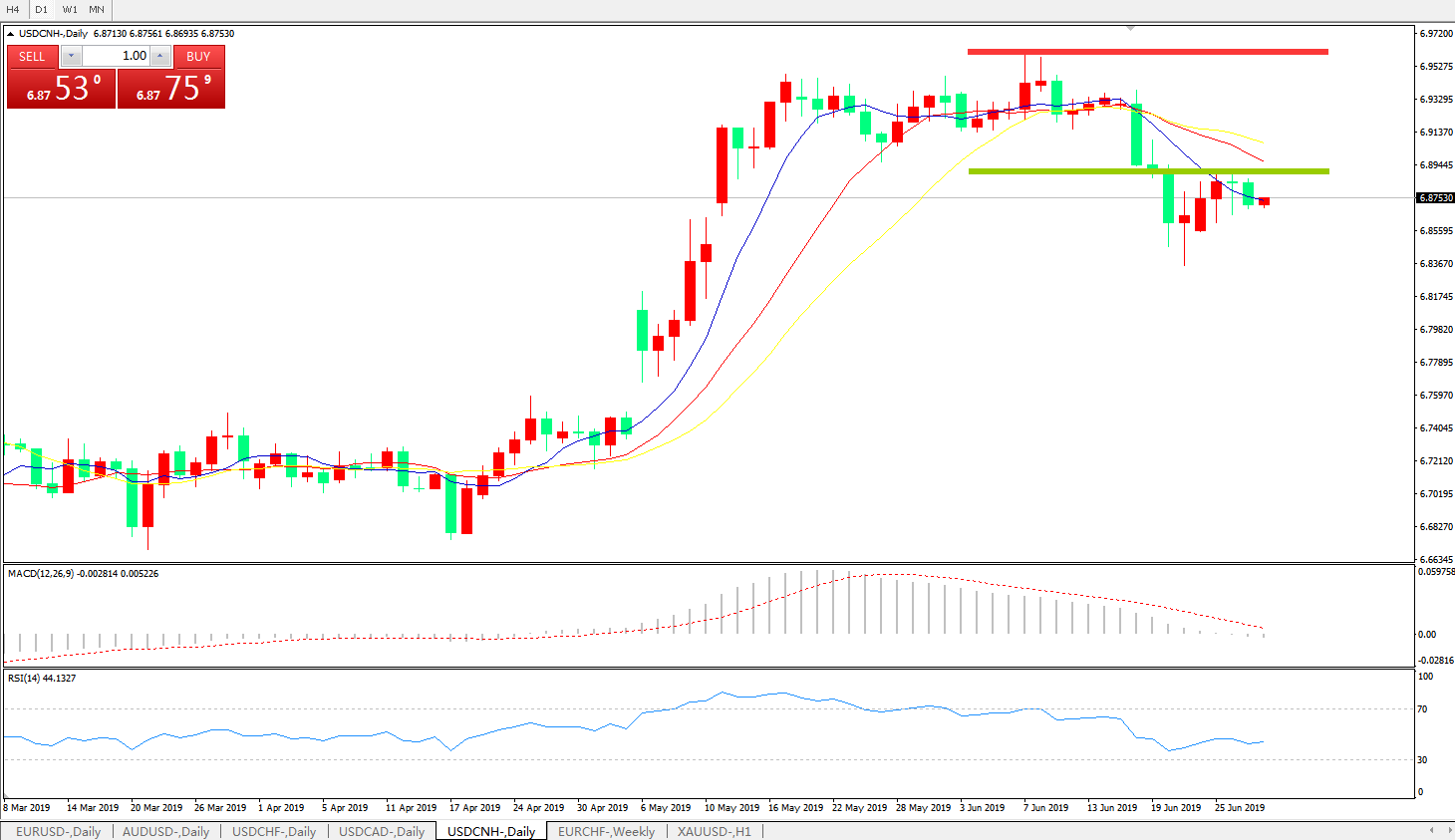 技术面简析:日线呈有序空头排列MACD逼近0轴且动能柱绿柱放量RS延续弱势,贸易争端缓解预期犹在,G20进行时谨慎关注,预计汇价大概率将进一步走低
