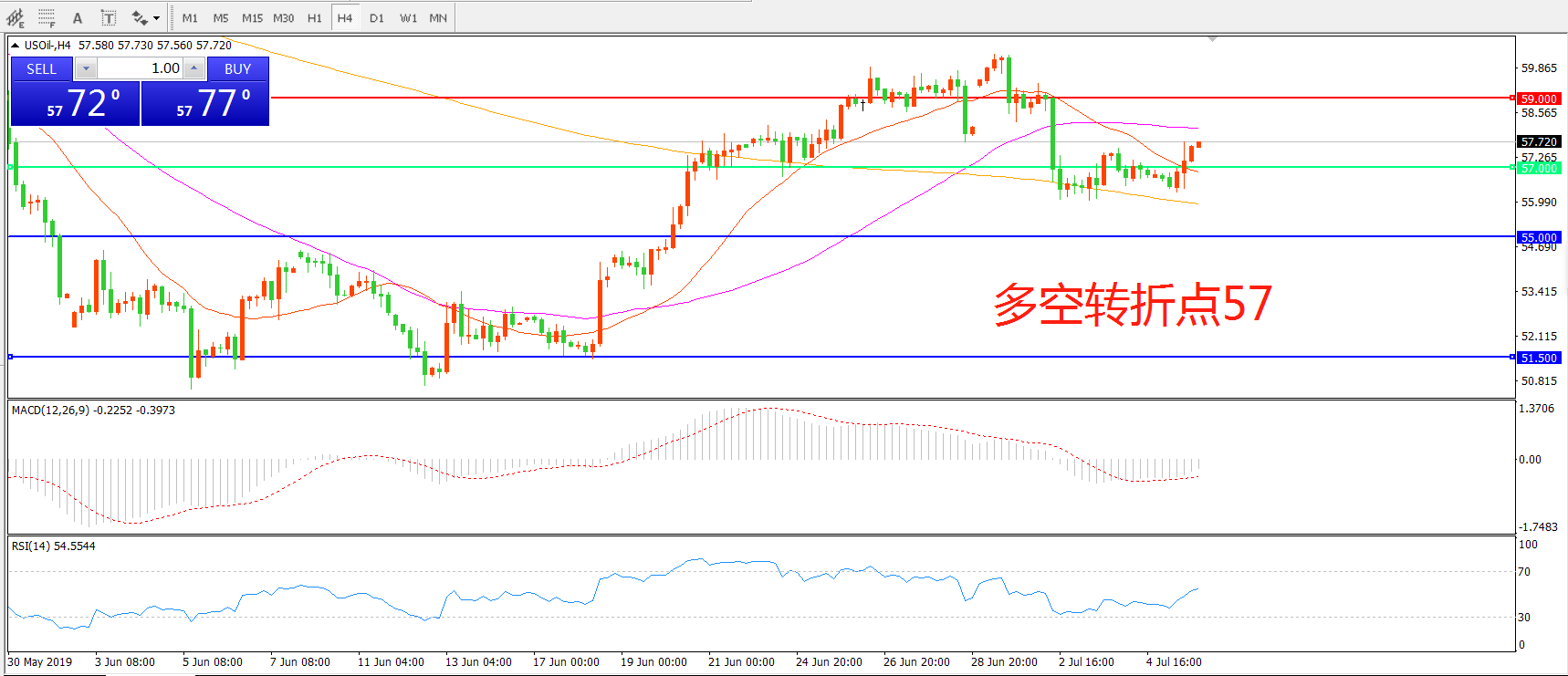 交易策略:在57.00 之上看涨,目标59.00 61.00