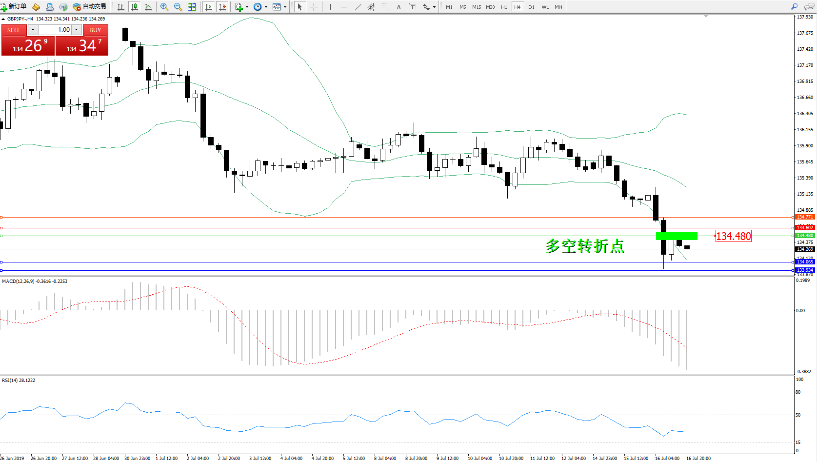 交易策略:134.480下方看跌,目标134.065、133.934