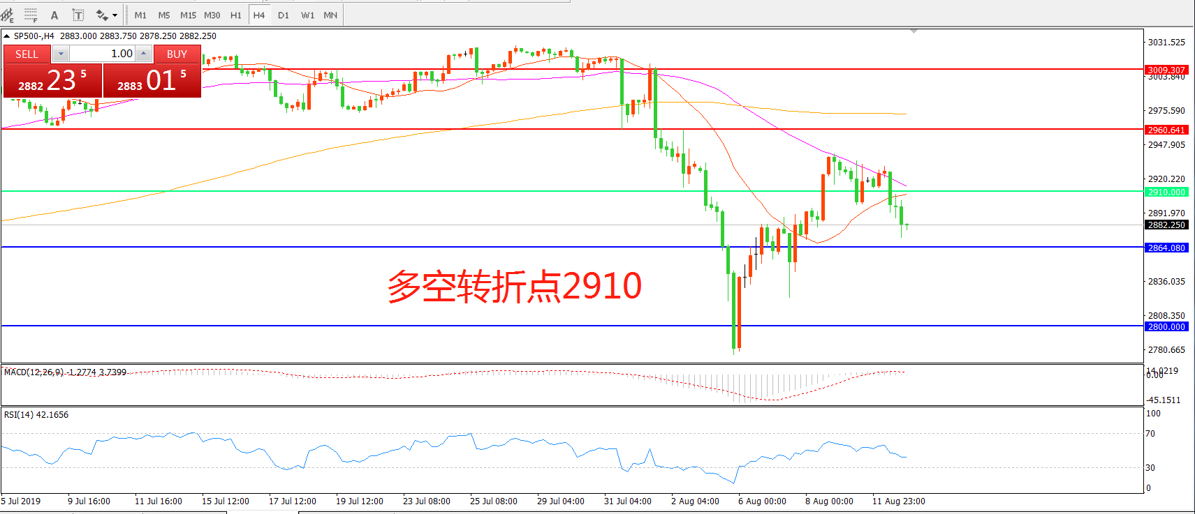 交易策略:在2910.00之下看跌,目标2864.00 2800.00
