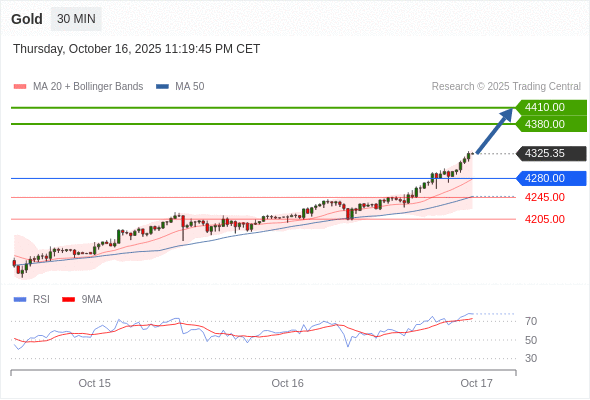 在 4280.00 之上,看涨,目标价位为 4380.00 ,然后为 4410.00 。