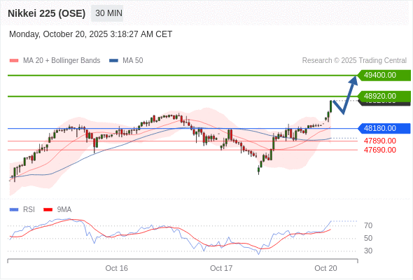 在 48180.00 之上,看涨,目标价位为 48920.00 ,然后为 49400.00 。