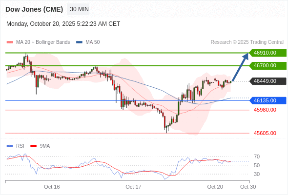 在 46135.00 之上,看涨,目标价位为 46700.00 ,然后为 46910.00 。