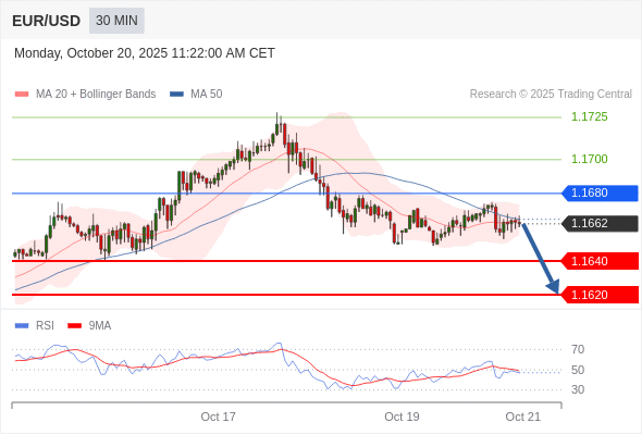 在 1.1680 之下,看跌,目标价位为 1.1640 ,然后为 1.1620 。