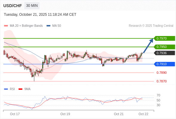在 0.7910 之上,看涨,目标价位为 0.7950 ,然后为 0.7970 。