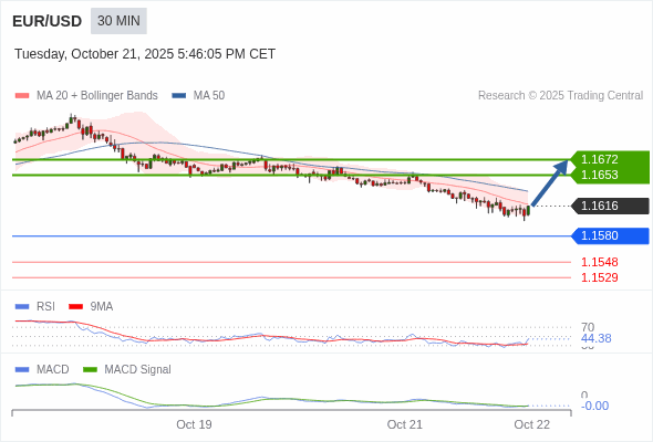 替代方案: 在1.1580以下,期待1.1548和1.1529。