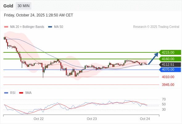 在 4070.00 之上,看涨,目标价位为 4160.00 ,然后为 4215.00 。