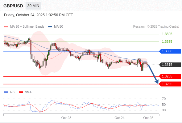 在 1.3350 之下,看跌,目标价位为 1.3285 ,然后为 1.3265 。