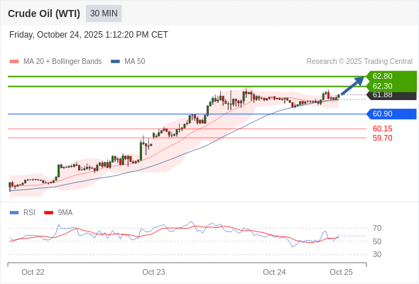 在 60.90 之上,看涨,目标价位为 62.30 ,然后为 62.80 。