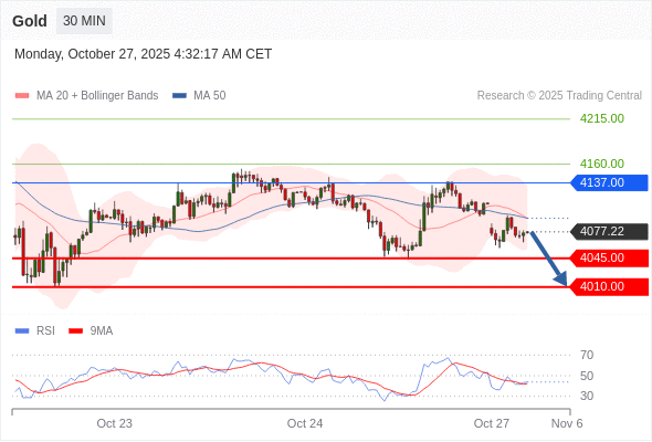 在 4137.00 之下,看跌,目标价位为 4045.00 ,然后为 4010.00 。