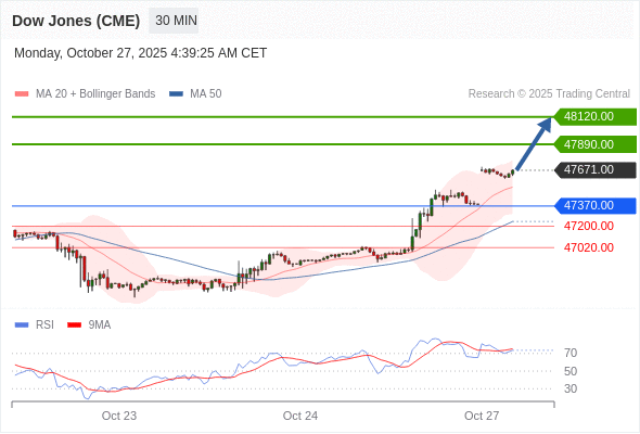 在 47370.00 之上,看涨,目标价位为 47890.00 ,然后为 48120.00 。