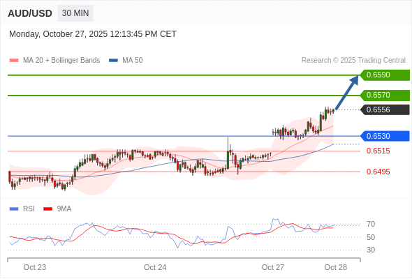 在 0.6530 之上,看涨,目标价位为 0.6570 ,然后为 0.6590 。