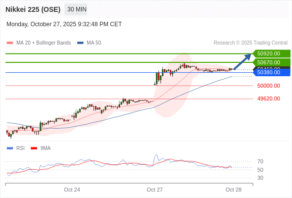 在 50000.00 之上,看涨,目标价位为 50670.00 ,然后为 50920.00 。