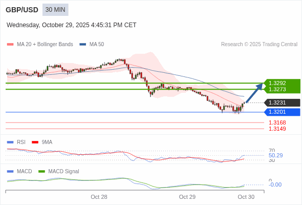 英镑/美元 当日内 : 看涨。