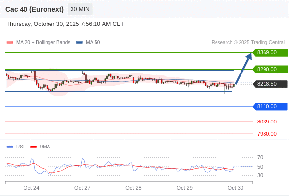 在 8110.00 之上,看涨,目标价位为 8290.00 ,然后为 8369.00 。