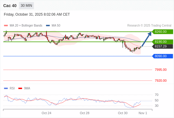 Cac 40 当日内: 超短线(当日内)支撑位在8090.00附近。