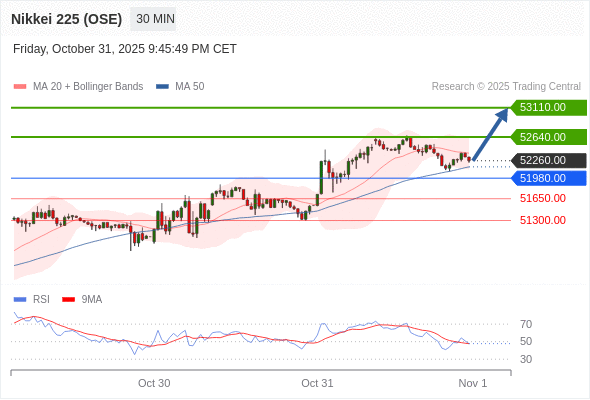 日经225股指期货 (OSE) 当日内: 超短线(当日内)支撑位在51980.00附近。