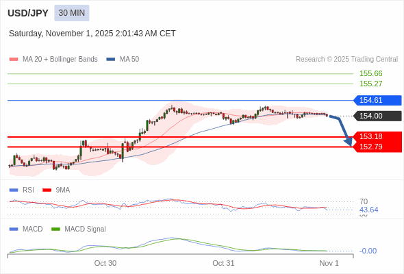美元/日元 当日内 : 看跌,在 154.61 之下。