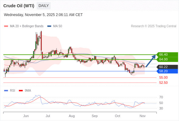 在 58.20 之上,看涨,目标价位为 64.00 ,然后为 66.40 。