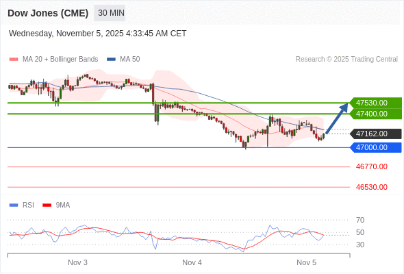 在 47000.00 之上,看涨,目标价位为 47400.00 ,然后为 47530.00 。