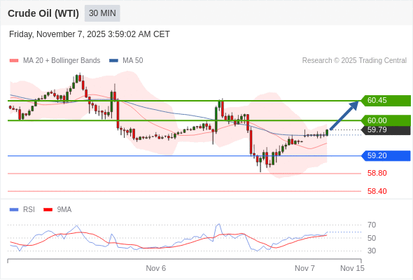 在 59.20 之上,看涨,目标价位为 60.00 ,然后为 60.45 。