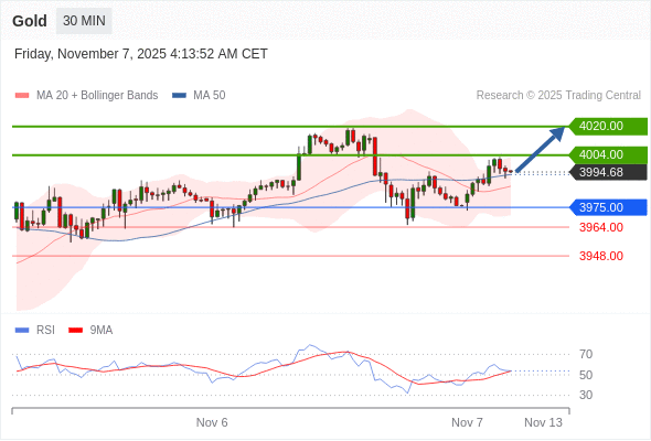 在 3975.00 之上,看涨,目标价位为 4004.00 ,然后为 4020.00 。