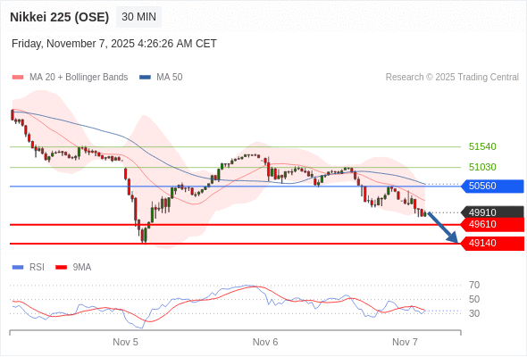 在 50560 之下,看跌,目标价位为 49610 ,然后为 49140 。