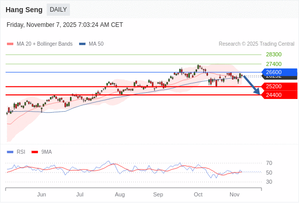 恒生指数 短线: 期待25200。