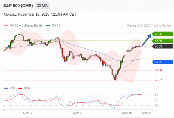 在 6735 之上,看涨,目标价位为 6826 ,然后为 6856 。