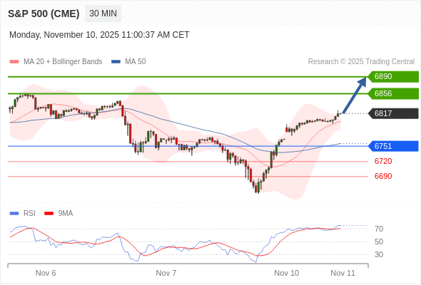 在 6751 之上,看涨,目标价位为 6856 ,然后为 6890 。