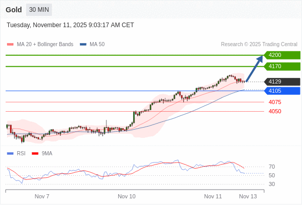 在 4105 之上,看涨,目标价位为 4170 ,然后为 4200 。