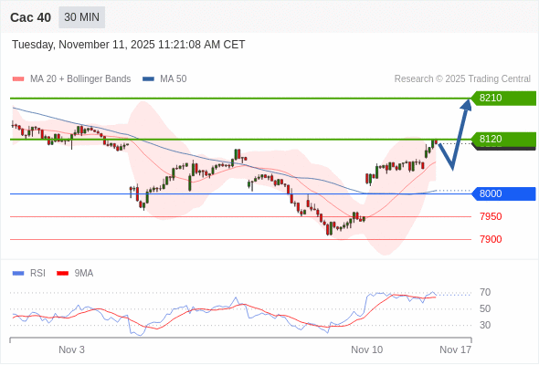 在 8000 之上,看涨,目标价位为 8120 ,然后为 8210 。