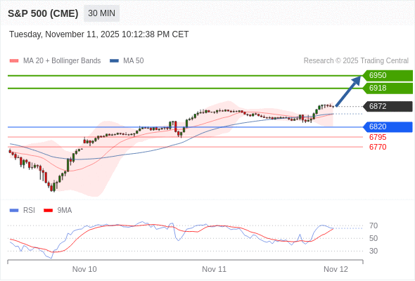 在 6820 之上,看涨,目标价位为 6918 ,然后为 6950 。