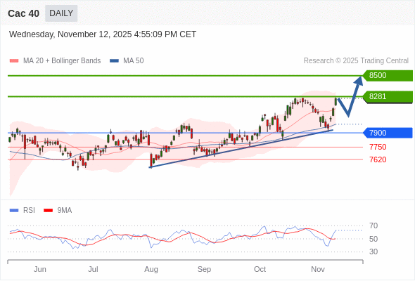 Cac 40 短线: 在7900之上,看涨。