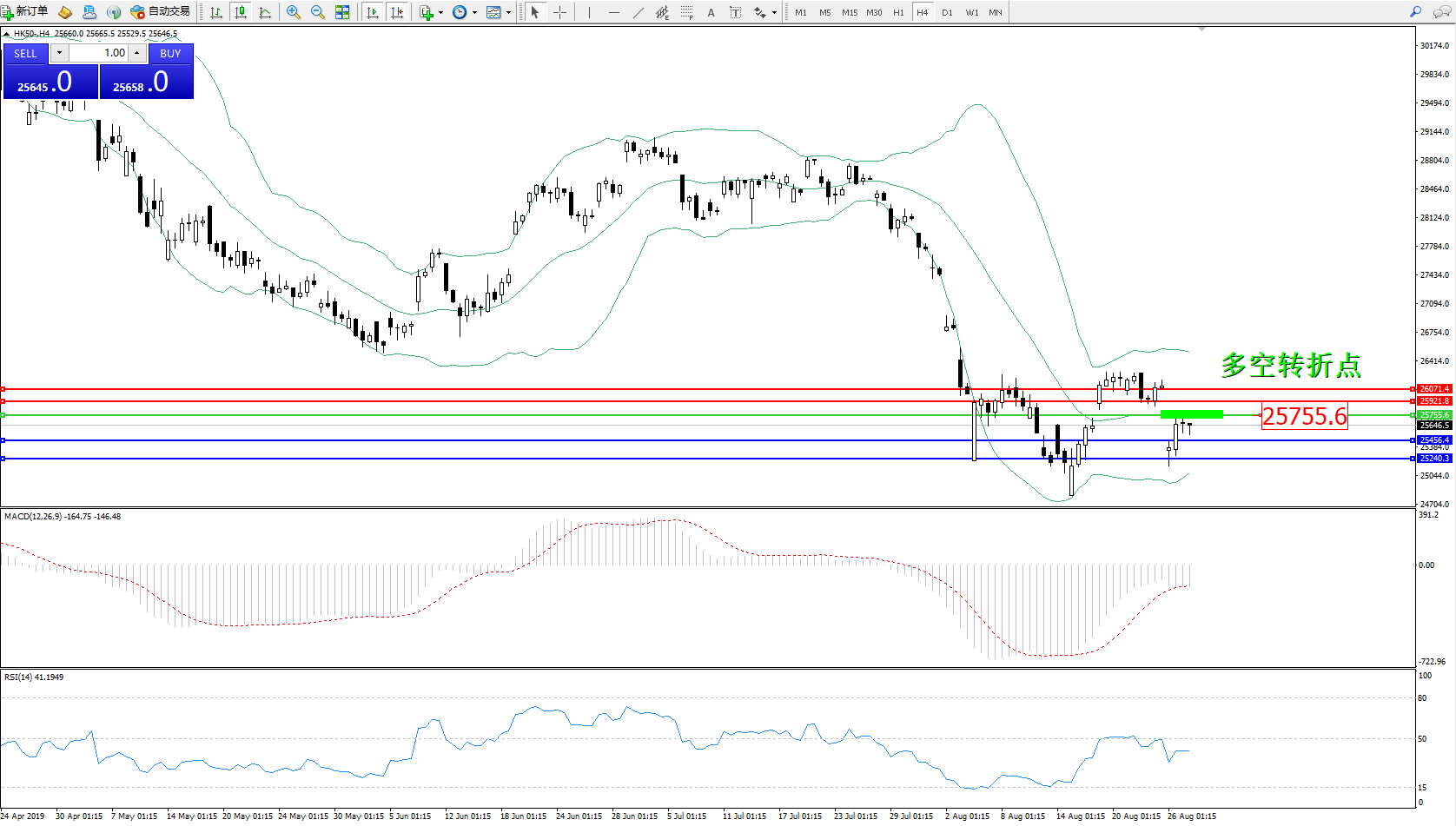 香港恒生指数8月27日(周二)收盘下跌16.26点,跌幅0.06%,报25664.07点;港股早上跟随外围造好而高开35点。曾扩大升幅至升84点,恒指高见25764。高位见沽压再回落倒跌。昨日恒指开盘即跌800点,但此后有报道称,特朗普在G7峰会上表示周末与中方进行过两次通话,而中方表示没有听说过美方提及的这次通话。但特朗普的含糊其辞还是在一定程度上稳定了市场情绪。目前外围消息牵动市场神经,投资者对市场持谨慎态度。