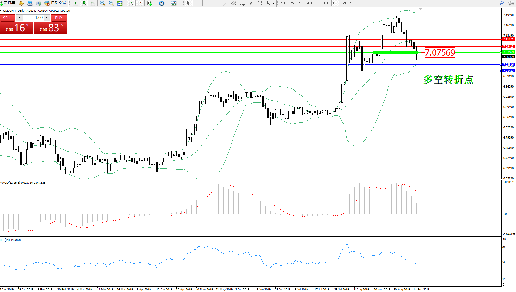 交易策略:7.07569下方看跌,目标7.035167.01427