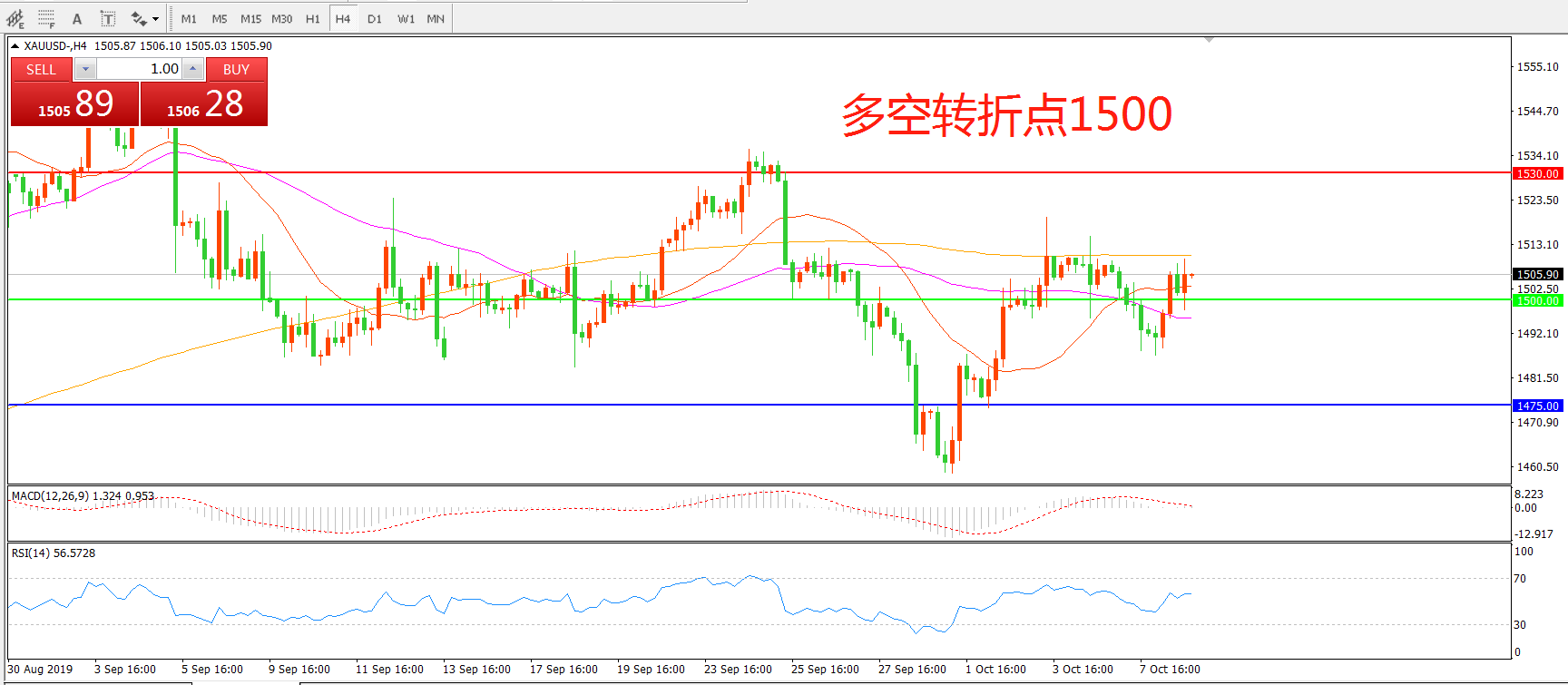 周二(10月8日)美国商务部将28家新公司和机构列入“黑名单”,其中主要包括专攻人工智能、机器学习和数字监控的企业,中国商务部表示中方也将采取一切必要措施,坚决维护中方自身利益。贸易谈判的波折提振了市场中的避险情绪,金价在周二收复千五关口,最终收报1506.17美元/盎司。