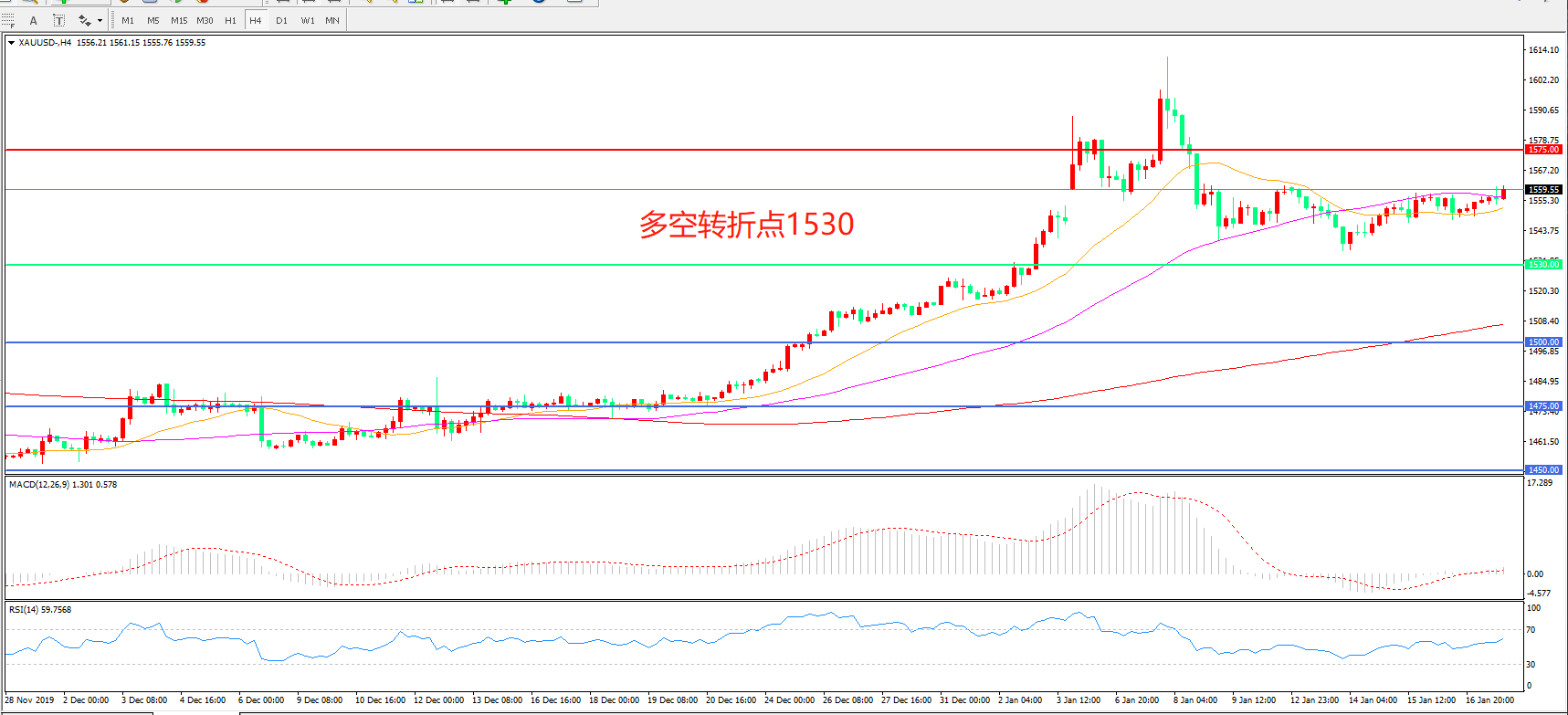刚刚过去的一周,金价维持窄幅震荡,全周振幅仅25美元, 由于中美签订第一阶段经贸协议,国际贸易局势显著改善。在避险情绪回落的背景下,金价却展现出惊人韧性, 震荡上行后收报1559.00美元/盎司。 本周三大央行将陆续开始公布2020年首次货币政策决定,宽松预期之下,金价中期走势仍然看多。