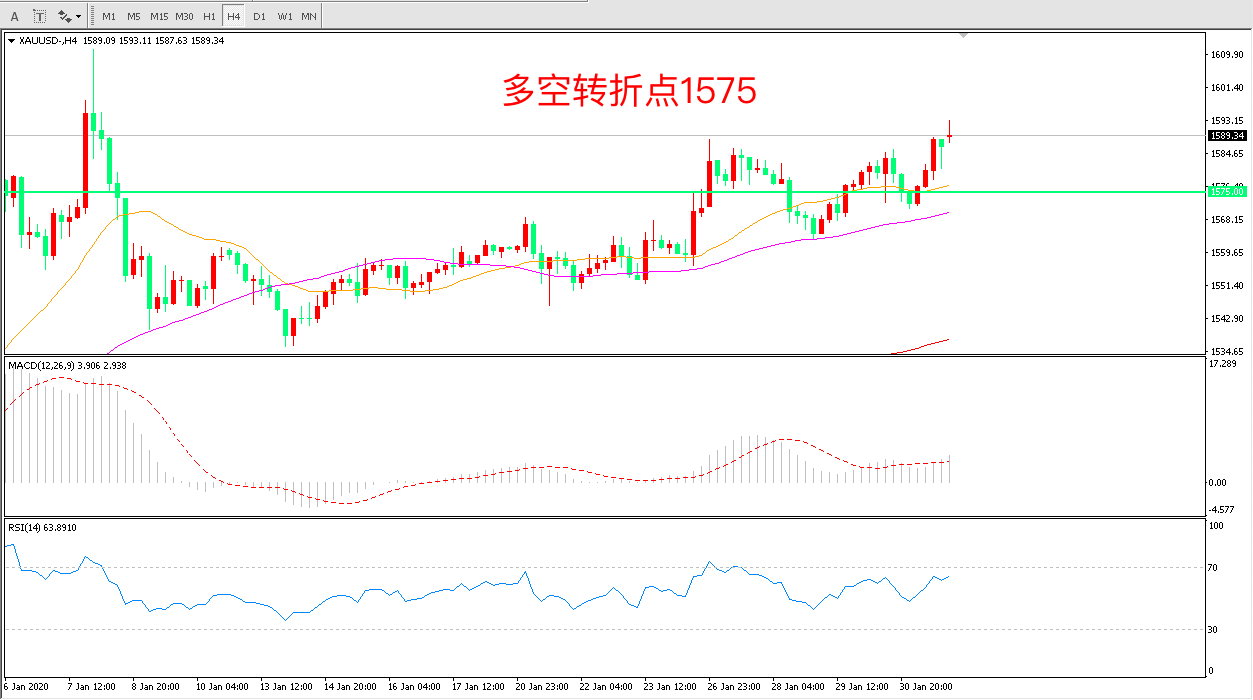 备选策略:在1575.00之下看跌,目标1530.00 1500.00
