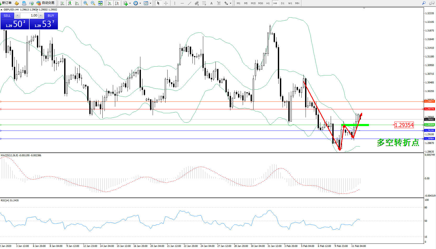 交易策略:1.29354上方看涨,目标1.29774、1.29977
