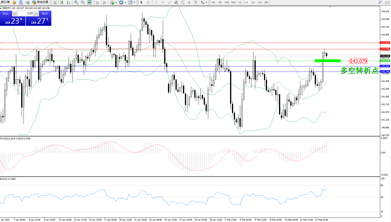 英镑兑日元现报143.24,涨0.40%;英国经济将以足够快的速度增长,使英国央行得以在今年避免降息,从而在年底前帮助提振英经济。其部分原因是投资者已经下了重注,认为英国央行将在2020年将利率下调至0.50%。2月12日,隔夜指数掉期市场的定价暗示,英国12月17日的利率为0.48%,表明投资者认为英国2020年降息是必然的。若脱欧出现进展,导致2021年前后英国与欧盟未来贸易关系的不确定性进一步减弱,英国央行实际上可能在2021年某个阶段加息。