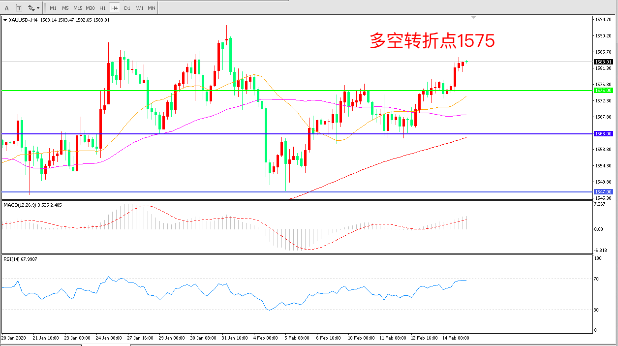 交易策略:在1575.00之上看涨,目标1610.00 1650.00