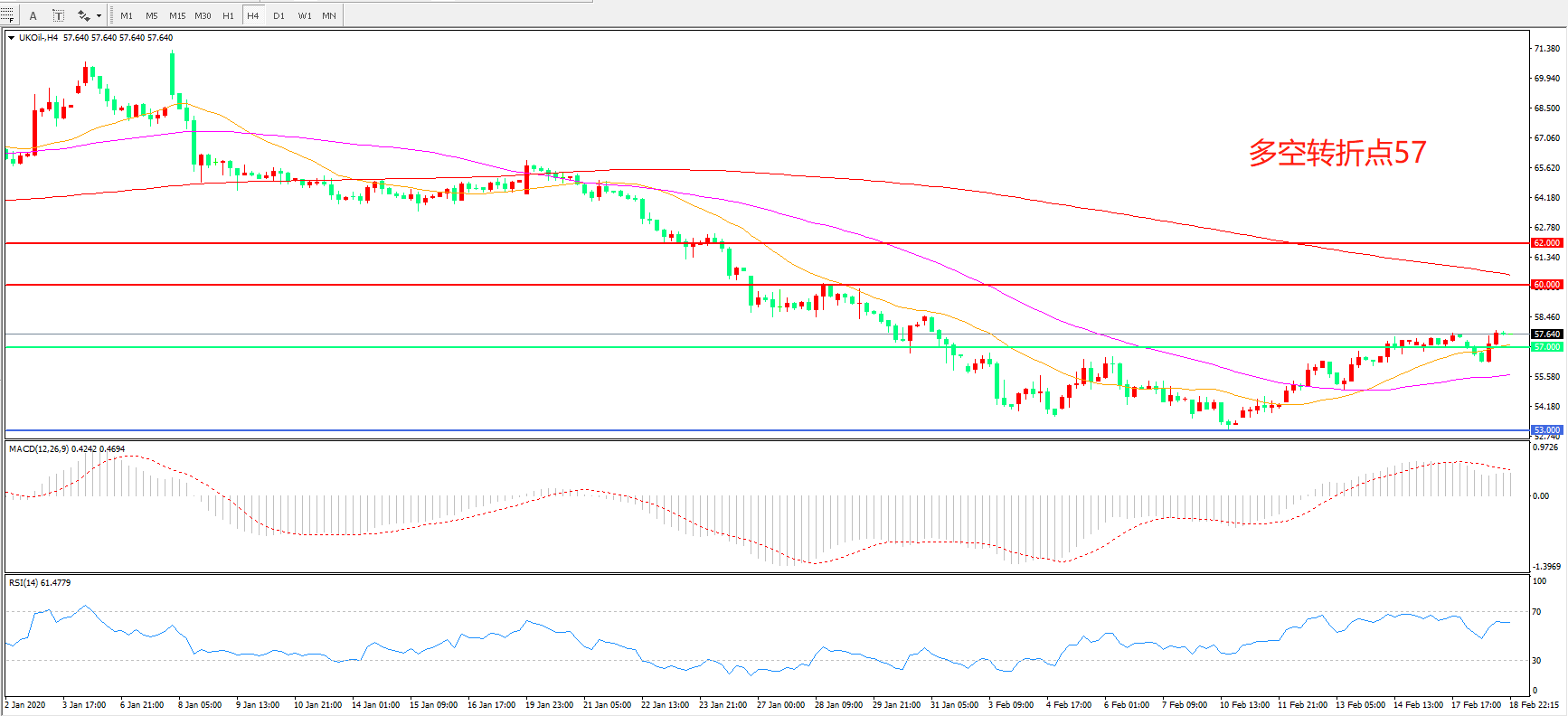 多空转折点:57.00